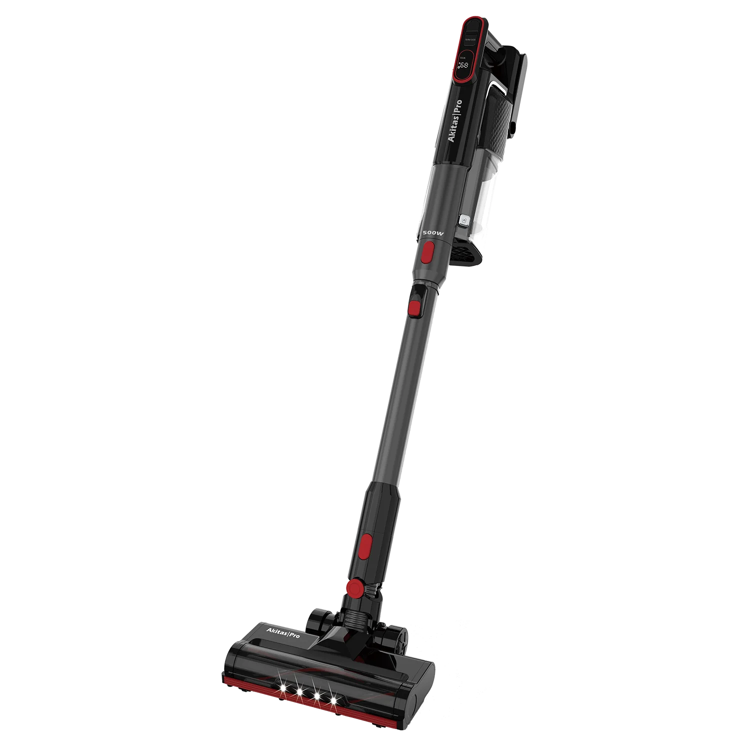 The Akitas Pro V15 Animal Stick Vacuum is the ultimate in both cleaning effectiveness and convenience. Powered by 2500mAh 25.2V batteries and with 500W of power to draw on, it is engineered to deliver superior cleaning performance across all floor types. The main power head features an agitating roller brush that effectively lifts carpet fibres, ensuring the removal of embedded dirt, dust, debris, and hair. For hard floors, the rotating soft brush roller excels at capturing fine dust and larger particles, leaving surfaces spotless.
